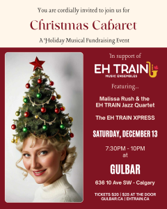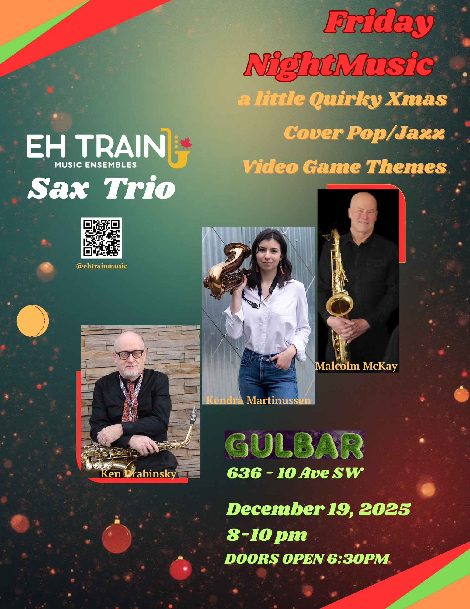 Welcome Aboard the EH TRAIN Your 1 Stop Shop for the finest in musical entertainmentUpcomingDec. 13 Christmas Cabaret @ GulbarBUY TICKETS______________________________________________________Dec. 19 EH TRAIN Sax Trio @ Gulbar